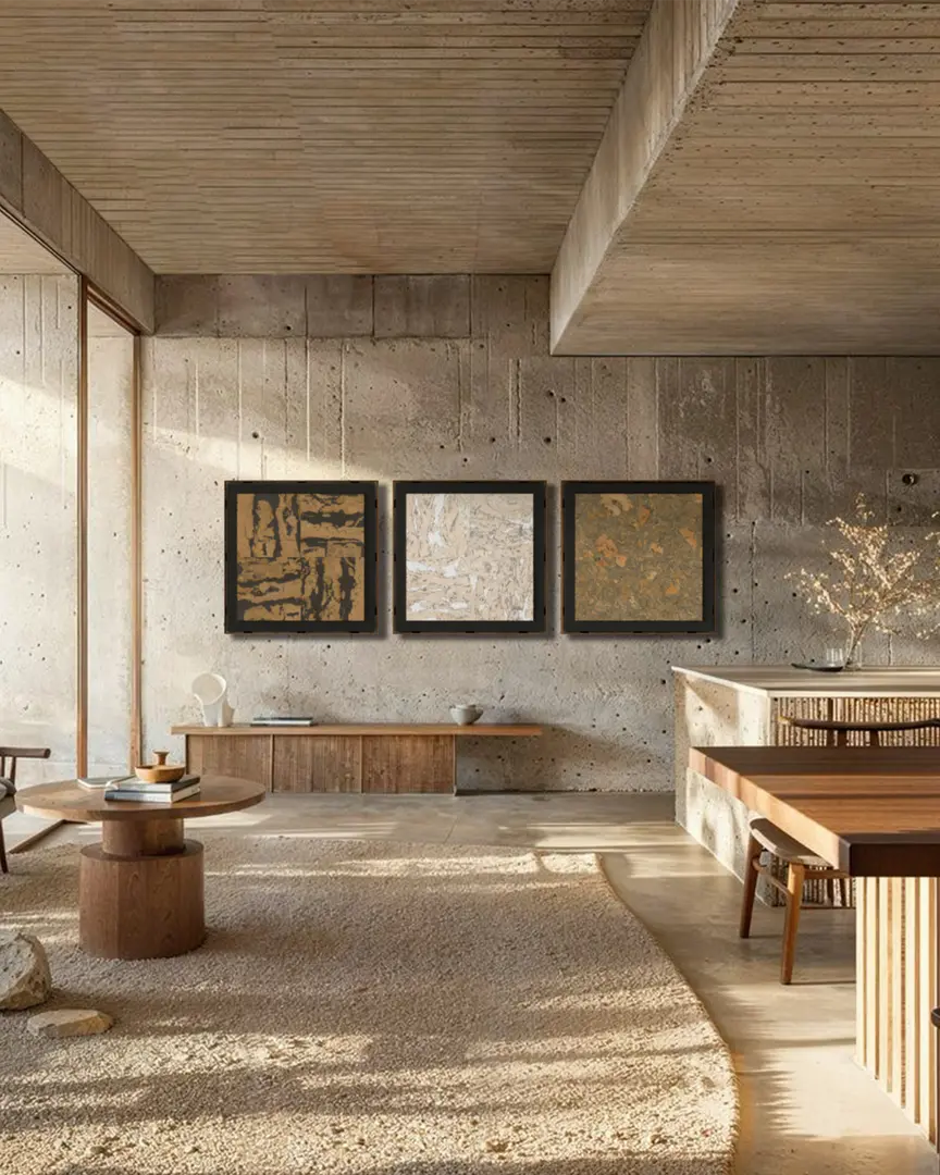An acoustic panel handcrafted from 100% natural premium materials. This sound-absorbing art panel is a sustainable and stylish acoustic solution. It reduces noise, regulates humidity, and is naturally hypoallergenic.