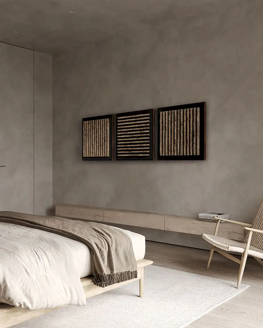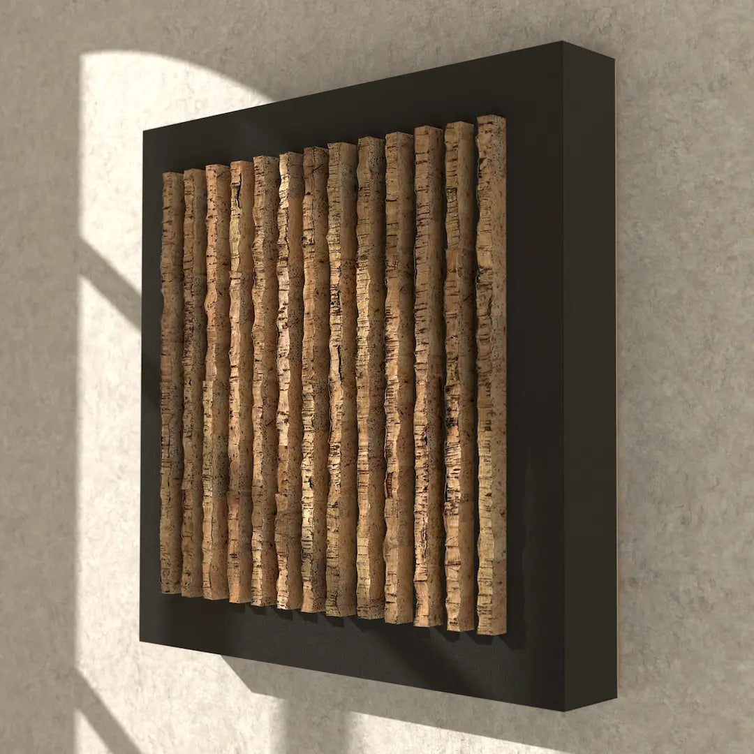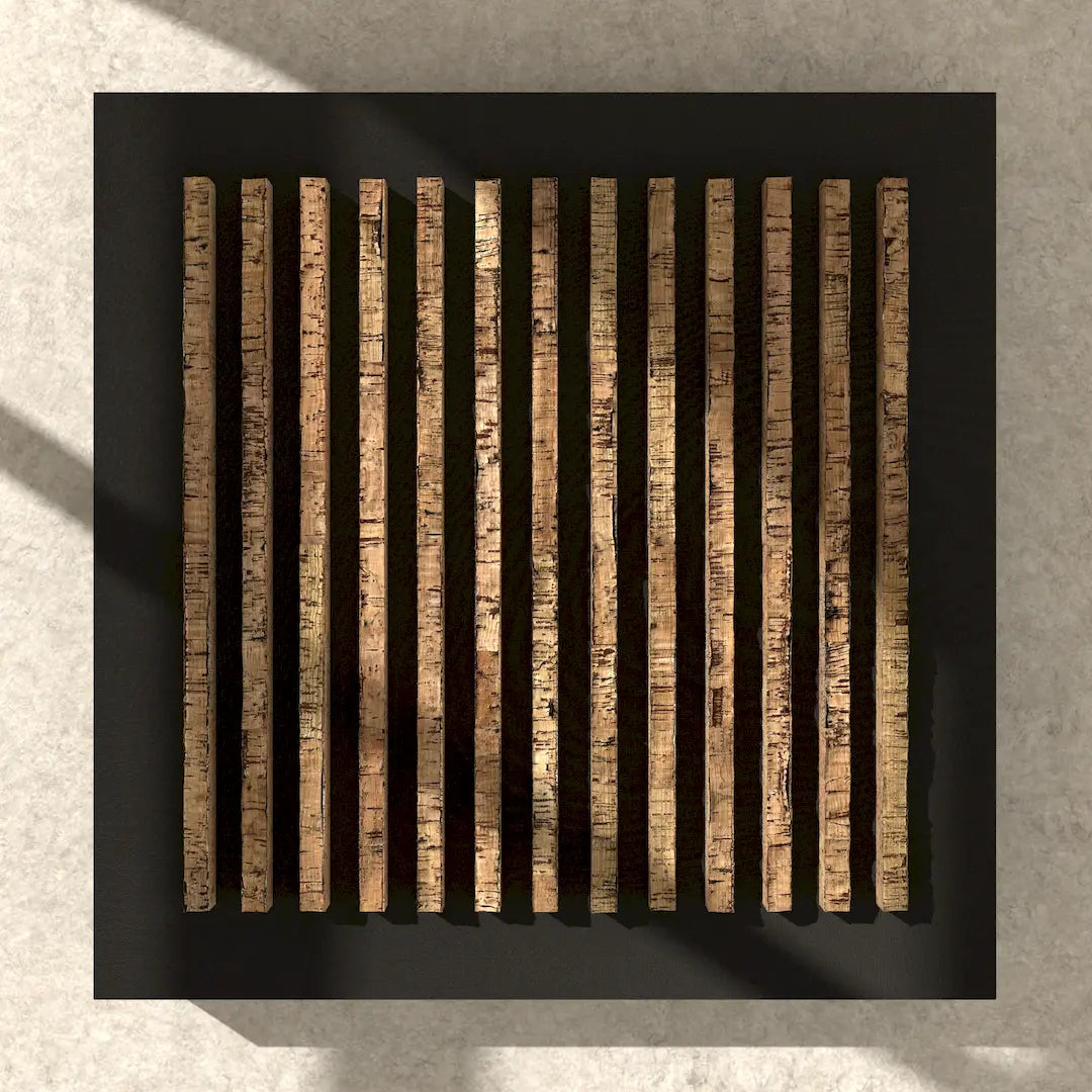 An acoustic panel handcrafted from 100% natural premium materials. This sound-absorbing art panel is a sustainable and stylish acoustic solution. It reduces noise, regulates humidity, and is naturally hypoallergenic.
