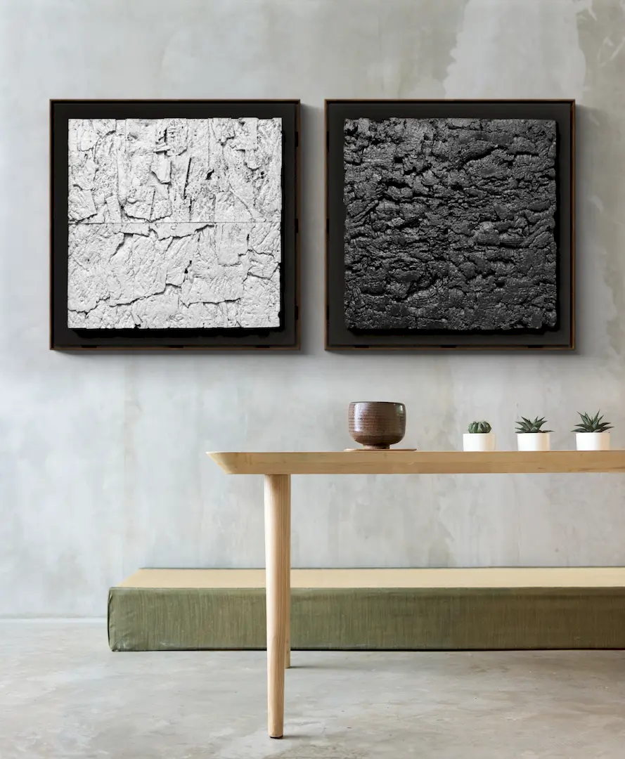An acoustic panel handcrafted from 100% natural premium materials. This sound-absorbing art panel is a sustainable and stylish acoustic solution. It reduces noise, regulates humidity, and is naturally hypoallergenic.