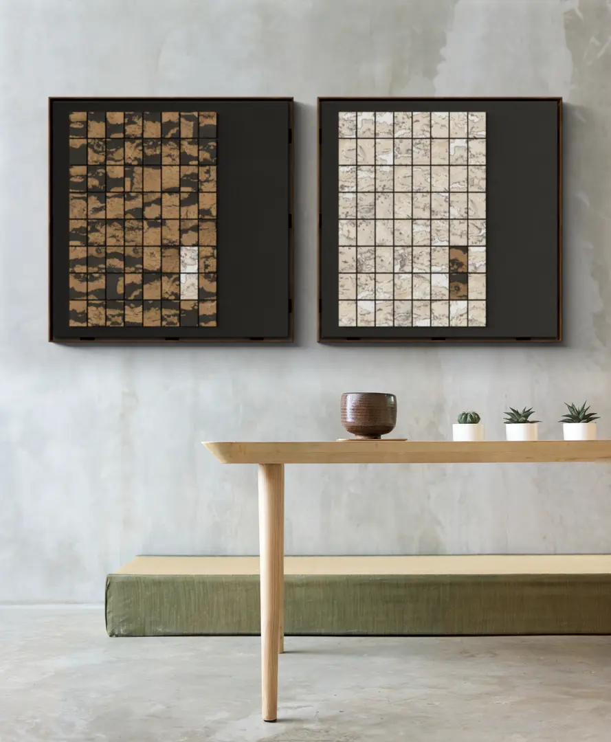 An acoustic panel handcrafted from 100% natural premium materials. This sound-absorbing art panel is a sustainable and stylish acoustic solution. It reduces noise, regulates humidity, and is naturally hypoallergenic.