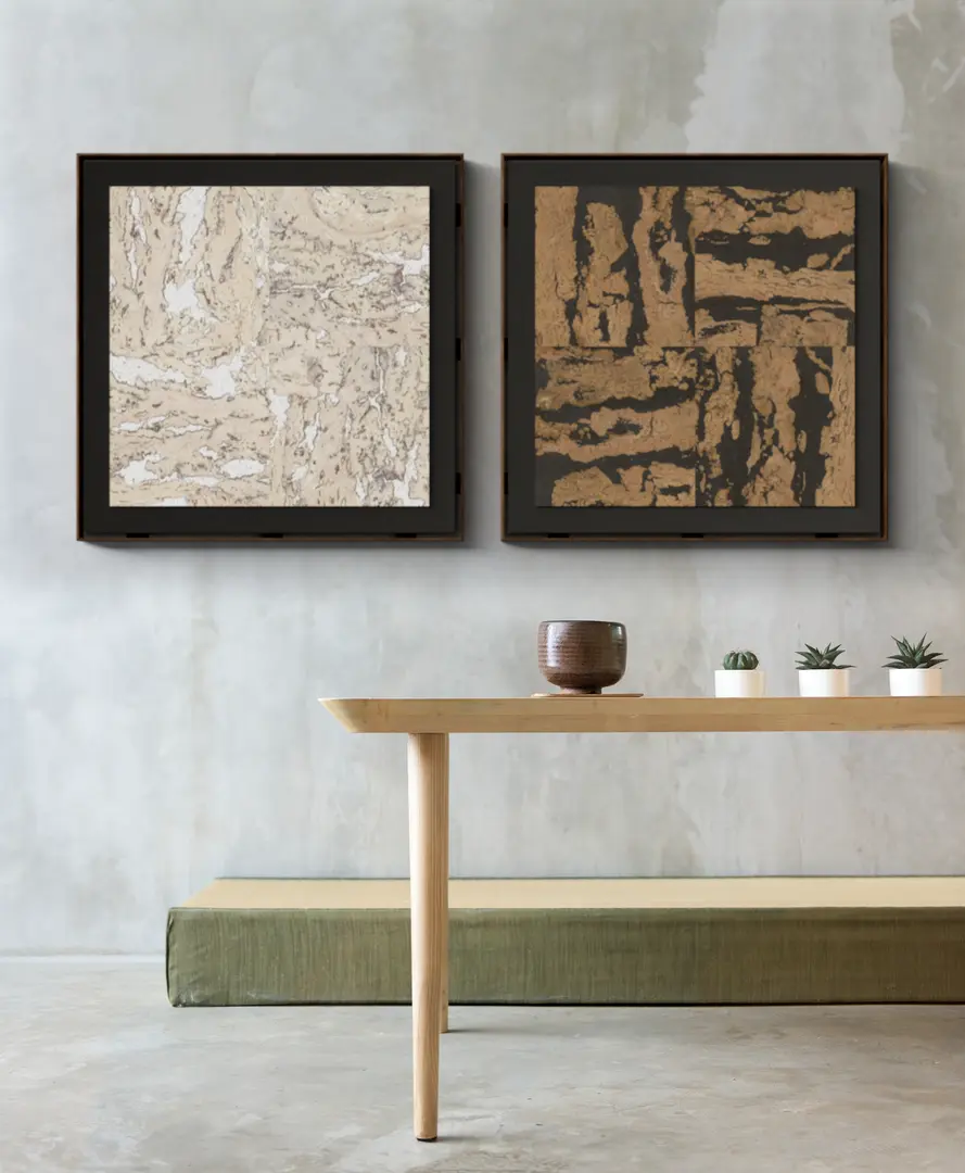 The front décor is crafted from Natural cork bark offering excellent sound absorption due to its unique cellular structure that dampens vibrations and reduces echo. Cork is resistant to mold, mildew, and allergens.