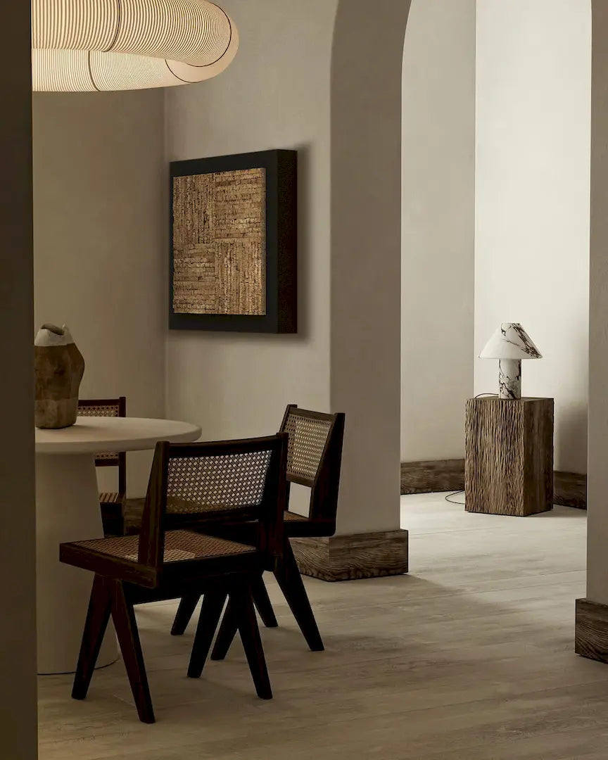 An acoustic panel handcrafted from 100% natural premium materials. This sound-absorbing art panel is a sustainable and stylish acoustic solution. It reduces noise, regulates humidity, and is naturally hypoallergenic.