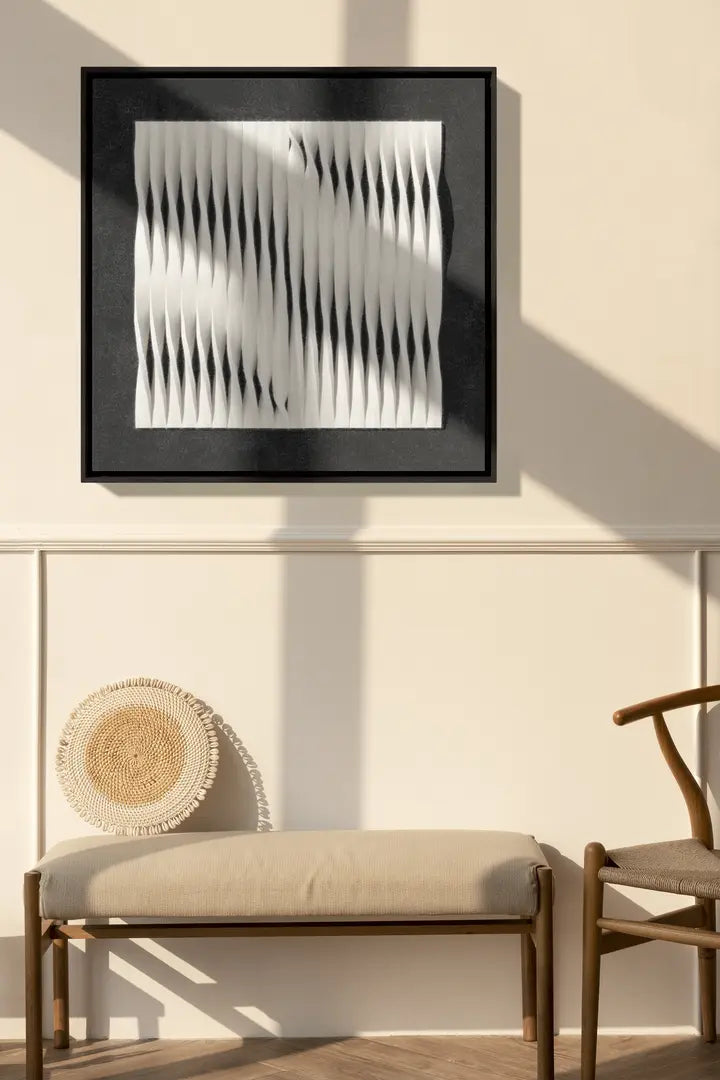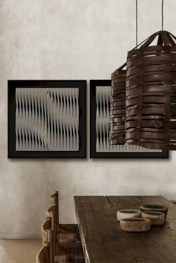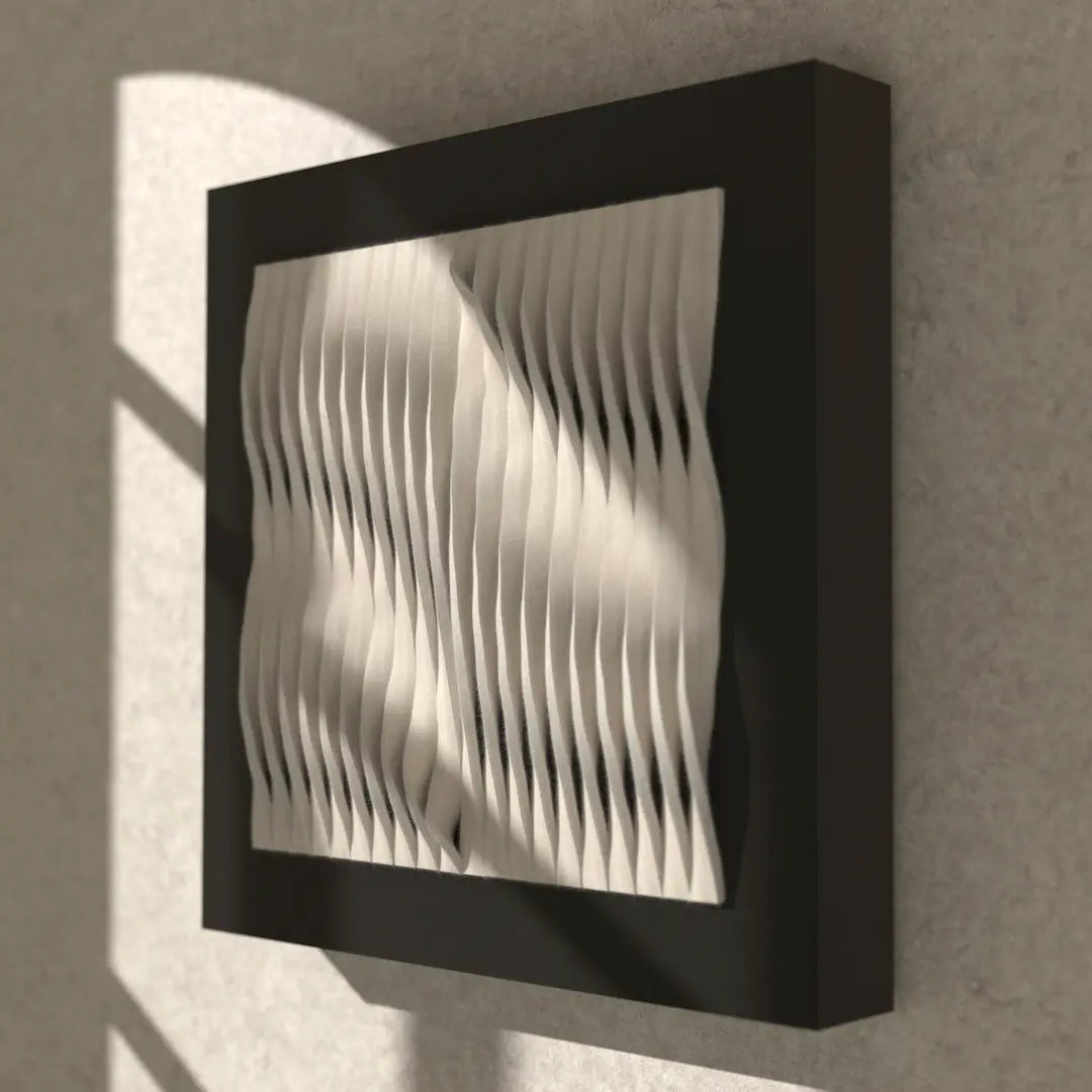 An acoustic panel handcrafted from 100% natural premium materials. This sound-absorbing art panel is a sustainable and stylish acoustic solution. It reduces noise, regulates humidity, and is naturally hypoallergenic.